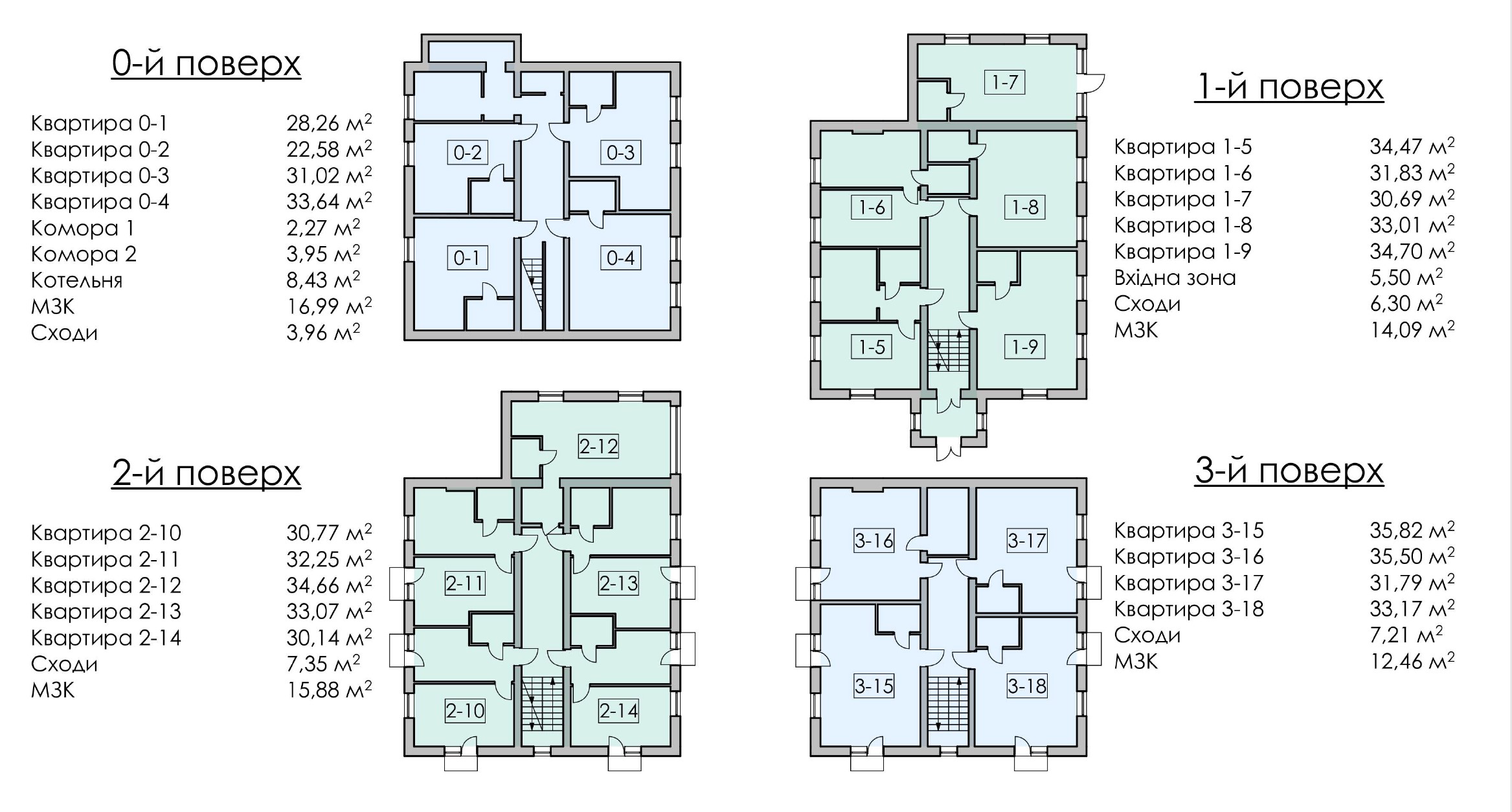 - Нульовий поверх: 4 квартири