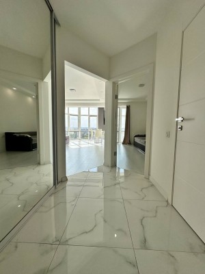 Продаж 1-ної квартири, Шолом-Алейхема (новобудова). Квартира в капітальному ремонті, площею 50м2. Кухня-студія і окрема кімната, є гардеробна, зроблено перепланування. Перетерті стіни, замінені проводка мідна 2.5 діаметр.Виведено УЗО, окремо на техніку та кімнати.. Окремий лічильник на тепло. Тепла підлога ванна та прихожа. Освітлення локальних зон. На підлозі керамічна плитка, ламінат. Вікна та панорамний балкон металопластиковий двохпакетний. При продажі залишаються всі меблі. Поруч ліцей, дитячий садочок, поліклініка, кафе, магазини, АТБ, спортзал та інше.