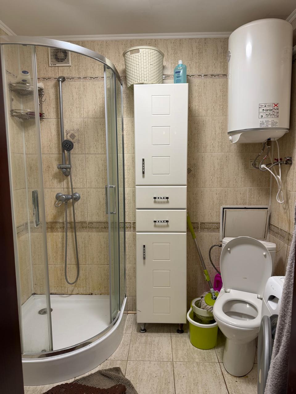 Квартира світла і затішна з автономним електроопаленням. Мебльована двоспальним ліжком, диваном, вбудованою кухнею, меблями, шафою, шафами-купе. В наявності побутова техніка: бойлер. варильна поверхня, посудомийна і пральна машини, кондиціонер, 2 телевізора, холодильник. Бронедвері.