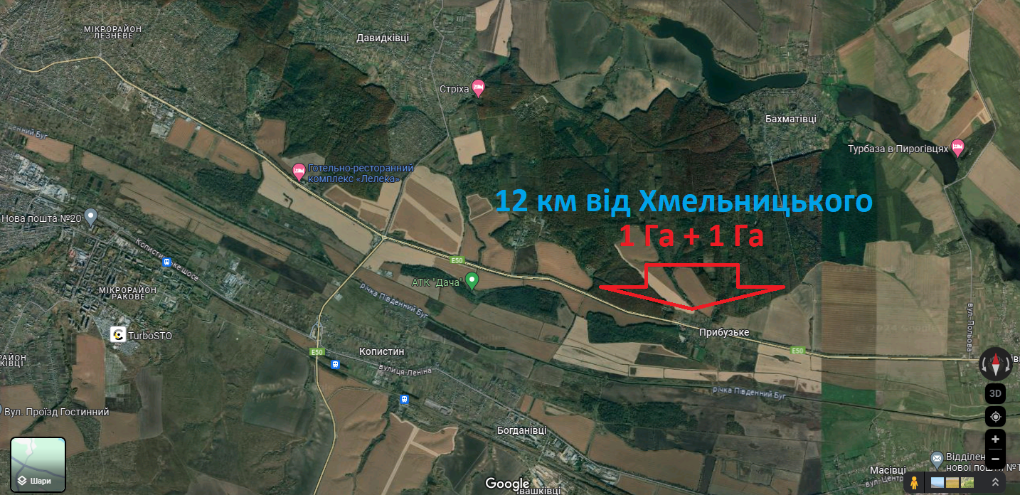 Продам земельну ділянку 1 Га с. Прибузьке 12 км від міста, сама ділянка 150 метрів від траси М12 (Е50). Від траси є відсипана дорога, поруч є світло і проходить газова…
