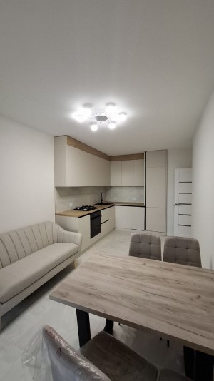 Кожен метр використано раціонально. Велика кухня 18кв.м, де ви зможете облаштувати не просто зону для готування, а повноцінну кухню-студію (вітальня + їдальня). Дві просторі кімнати 17 і 16кв.м.