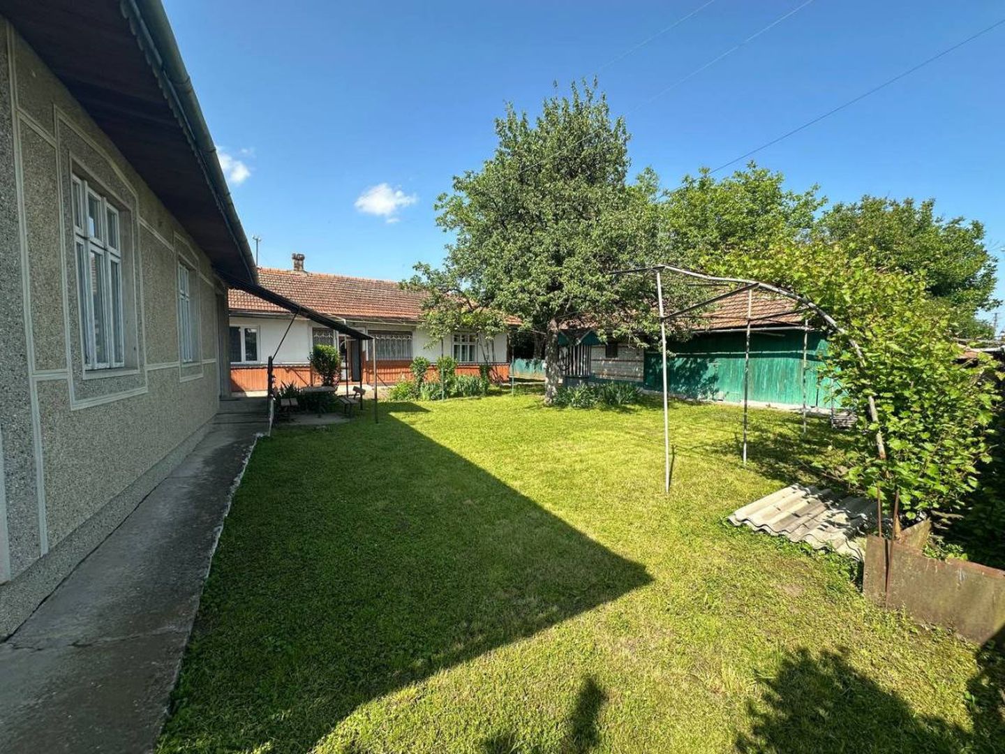 Територія огороджена. Можливо зробити паркомісце і навіс на авто.