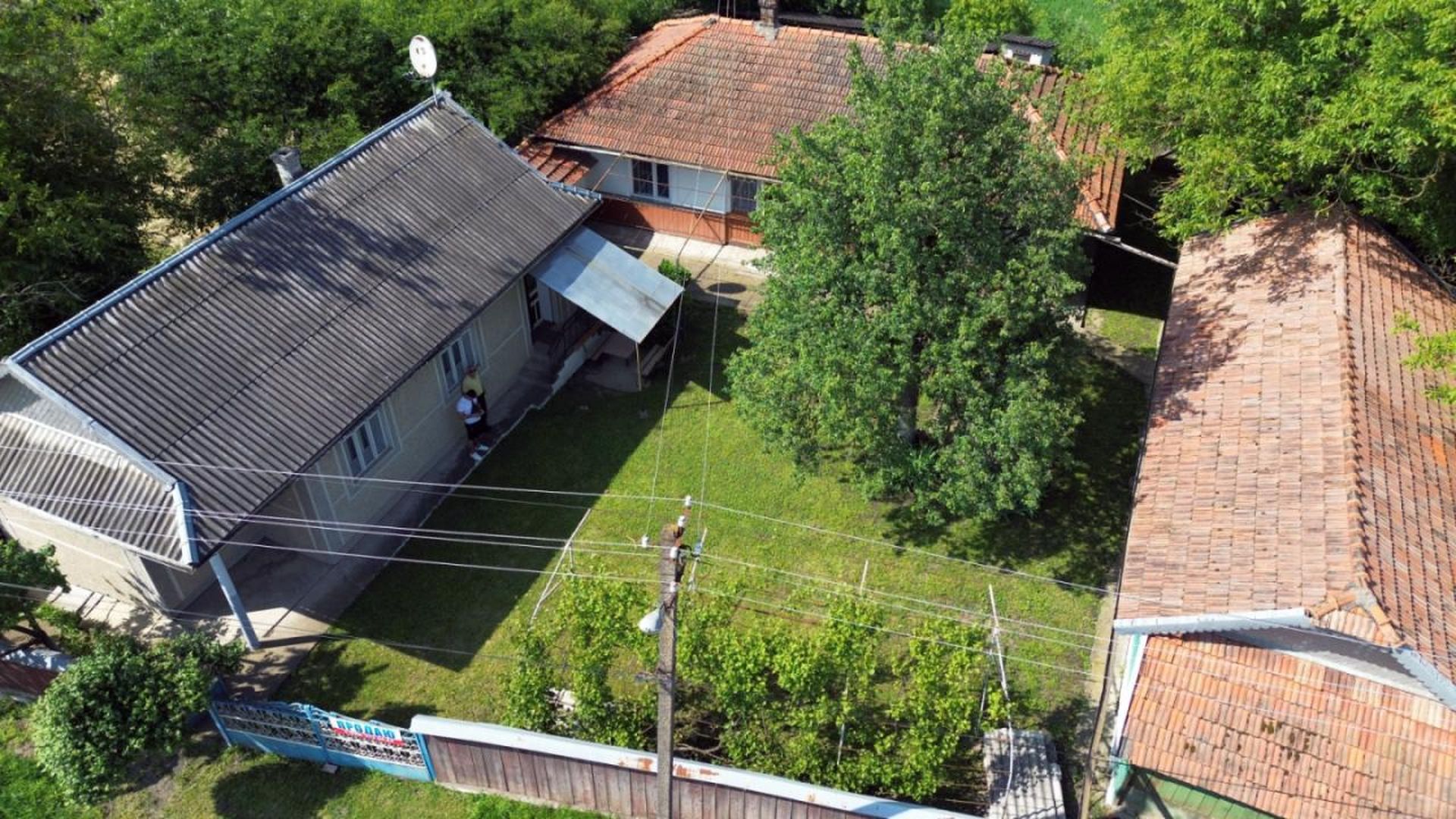 На території розташовані: одноповерховий дерев'яний будинок, площею 84 кв.м., літня кухня, сарай, підвал. Накриття: черепиця/шифер.