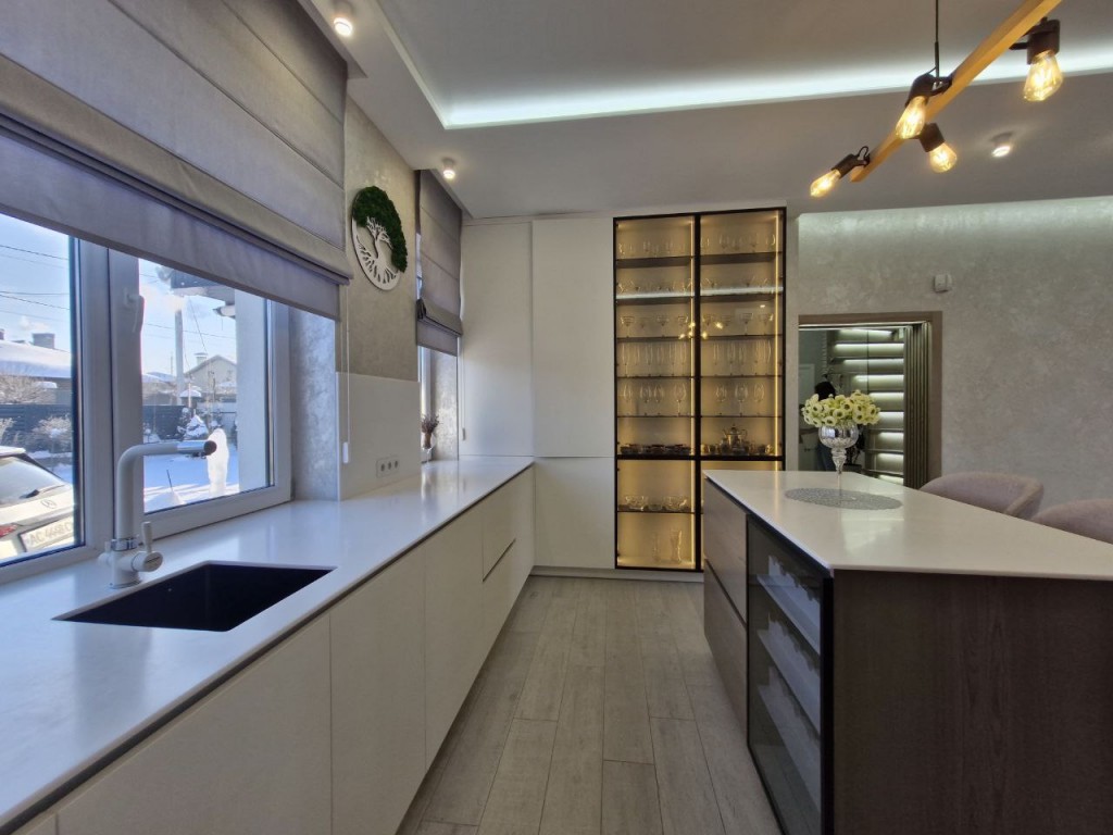 • У кухні та вітальні передбачено кілька сценаріїв освітлення, що формують комфортну атмосферу в різний час доби.