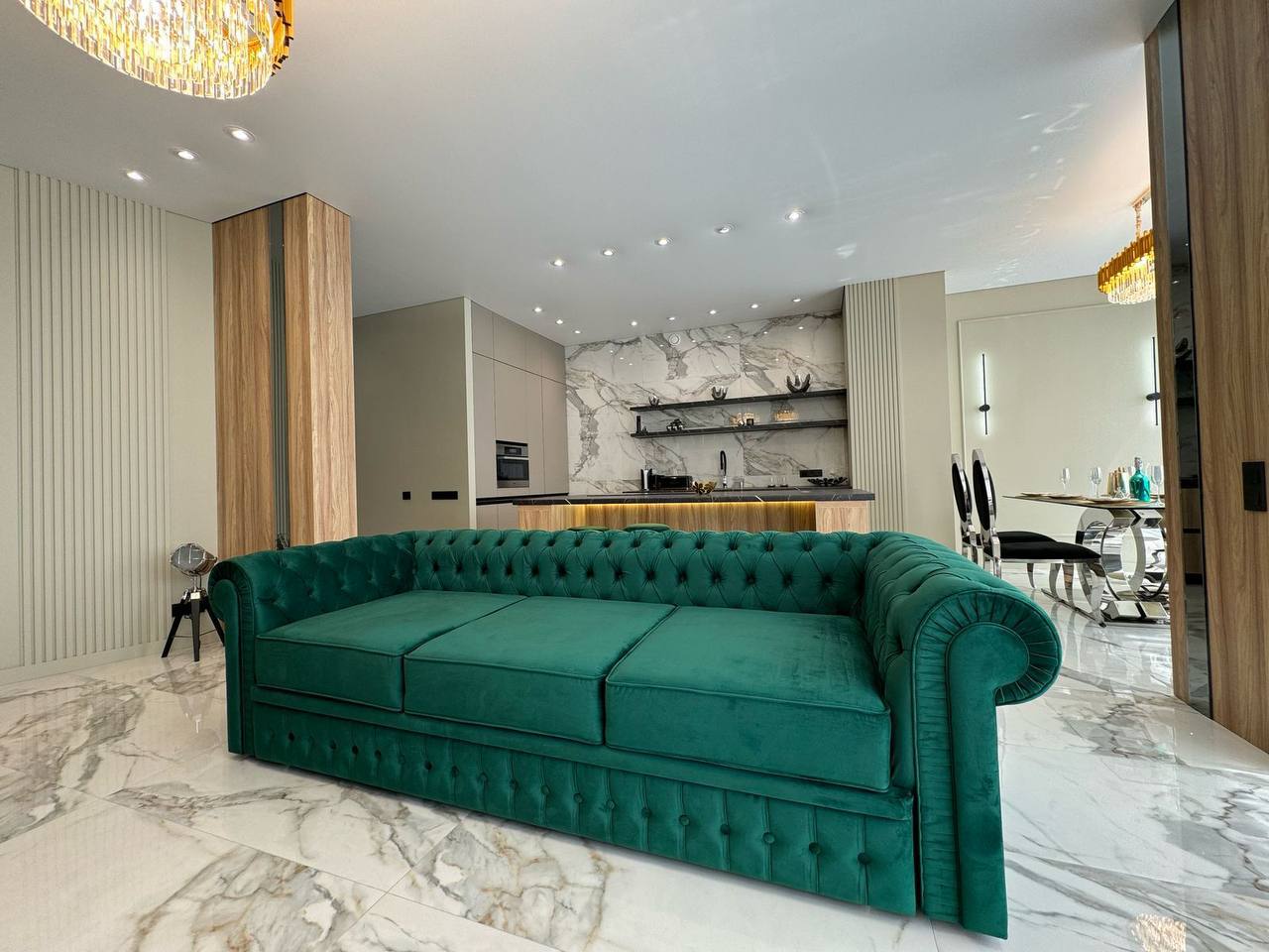 Простора кухня-вітальня дозволить приймати багато гостей.