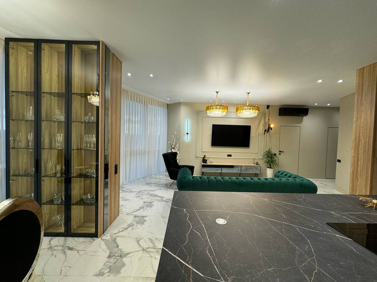 У квартирі продумано все до дрібниць, починаючи з санвузла, закінчуючи просторими гардеробними.