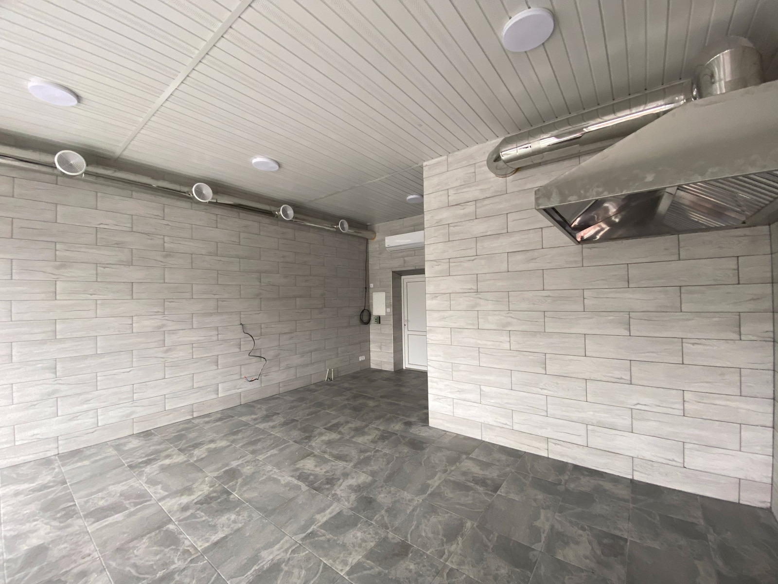 Перший поверх - зроблений косметичний ремонт. Готовий для використання і роботи. Другий поверх під ремонт. Складається із великої кімнати, санвузла, душової кімнати. На другому поверсі встановлений потужний кондиціонер. Потужність електроенергії - 16 кВт., три фази.