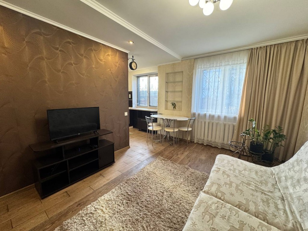 Здам переплановану 3-кімнатну квартиру в 2-кімнатну з кухнею-студією (апартаменти з двома окремими кімнатами) на м-н Алмазний (поряд зупинка громадського транспорту «Алмазна») по вул. Дорошенка.