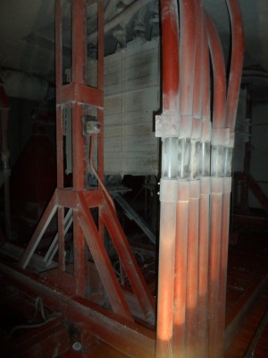 Млин має 3 помольних станки, на кожному з них по чотири вальці. Довжина одного вальця становить 57 см.