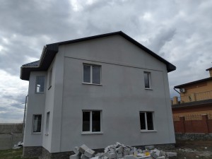 Состояние дома: под отделку с учетом ваших требований и безупречного вкуса. Конструкция здания стоит на армированном железобетонном ленточном фундаменте глубиной 1,30 м. Цоколь выполнен из силикатного кирпича и облицован бутовым камнем в замковом стиле. Стены дома из армированного газобетонного блока 375 мм UDK. Фасад утеплен минеральной ватой 50 мм и покрыт декоративной штукатуркой. За устойчивость и долговечность здания также отвечают два армопояса, которые выполнены на первом и втором этажах дома. Железобетонные перекрытия между этажами. Установлена металлическая лестница на второй этаж. Высота потолков – 3,0 м. Крыша изготовлена из высококачественной финской металлочерепицы RUUKKI. Все окна из передового профиля VEKA 70 мм с дорогой фурнитурой и трехкамерным энергосберегающим стеклопакетом. Входная дверь: металлическая двойная с утеплением, окрашена антикоррозионной эмалью.