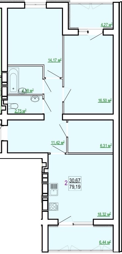 Загальна площа: 79.19 кв.м