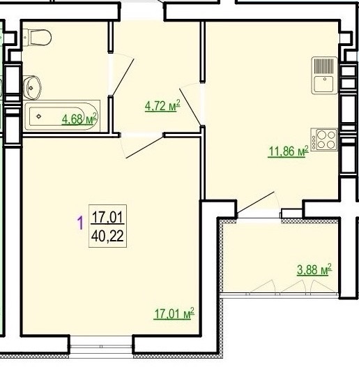 Загальна площа: 40.22 кв.м