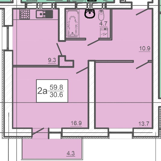 Загальна площа: 59.8 кв.м