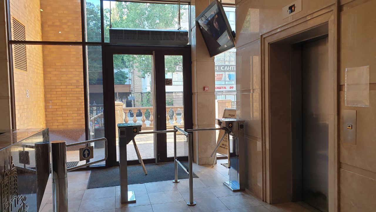 В офісі просторі кабінети з панорамними вікнами зі стелі до підлоги. Встановлені системи контролю доступу за відбитками пальців та цифровим паролем на вибір.