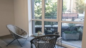 З офісу є вихід на власну відкриту терасу з ландшафтним озелененням та садовими меблями (20м).