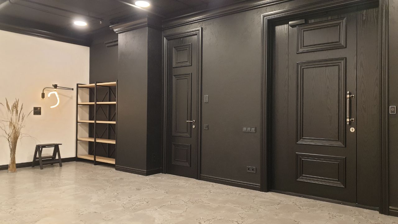 2 типи дверей нестандартної висоти за індивідуальним замовленням: прихованого монтажу із стіновими панелями і дерев’яні шпоновані.
