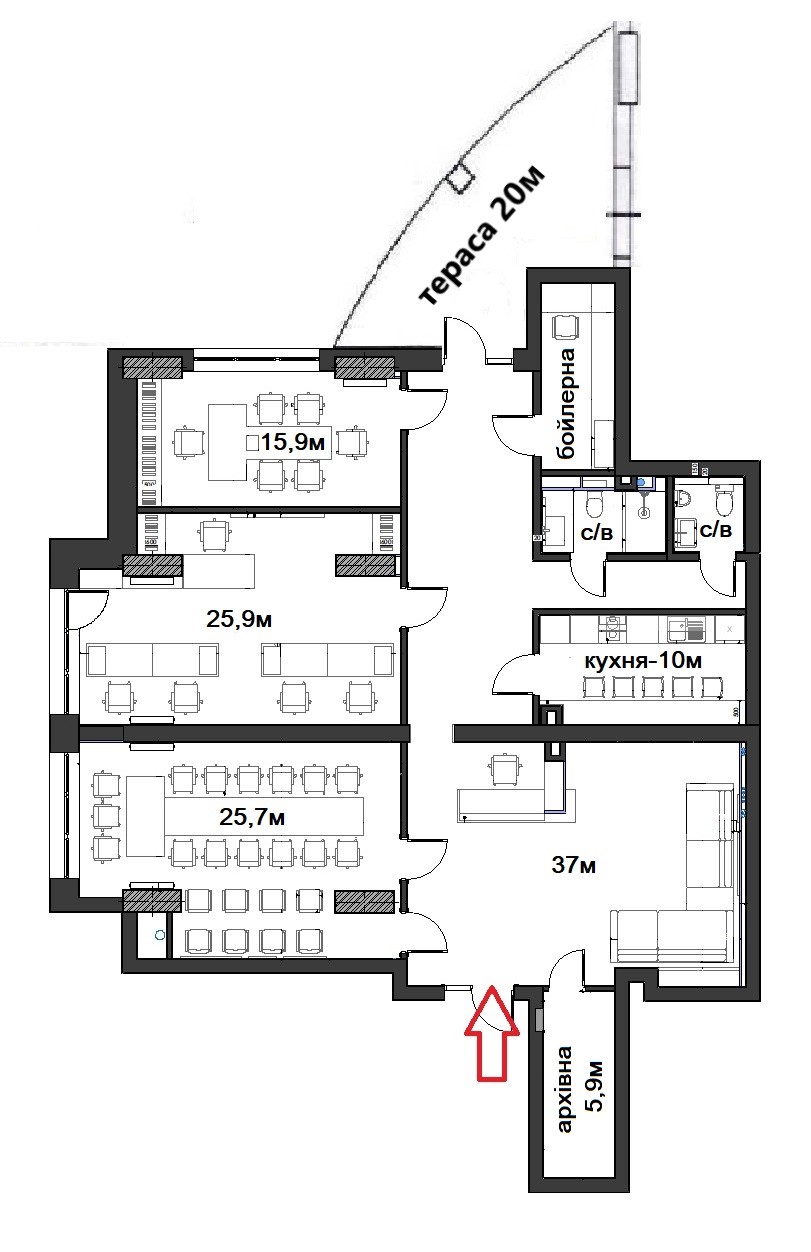 - 3 окремі кабінети (26м+26м+15м);