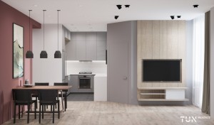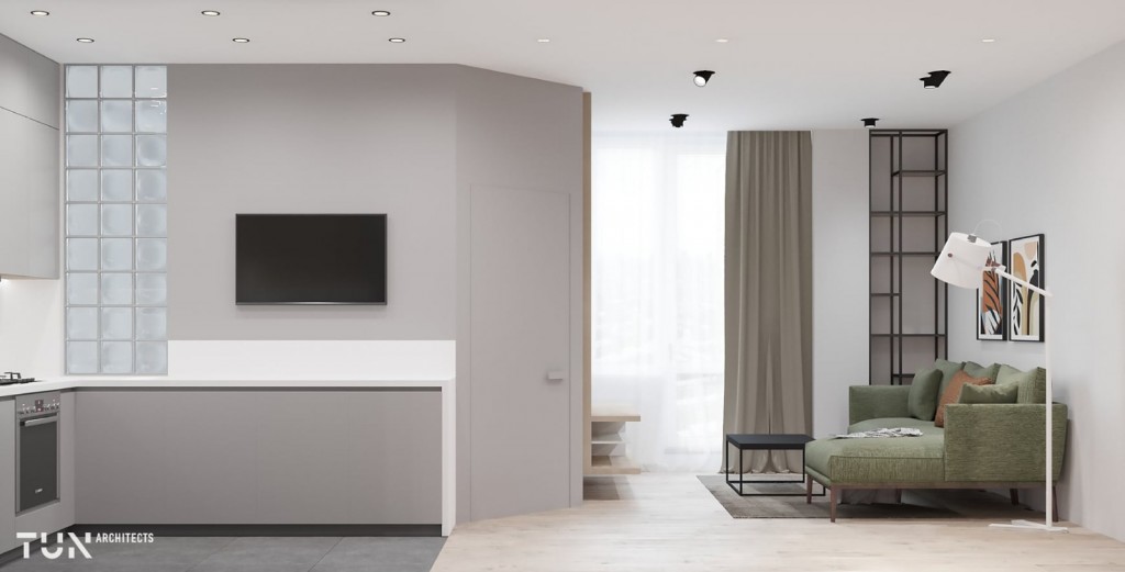 Загальна площа – 50 кв. м: зона кухні 6,1 кв.м з виходом у вітальню 18,1 кв.м, ізольована спальня - 9,2 кв.м, санвузол 5,4 кв.м, лоджія 8 кв.м.